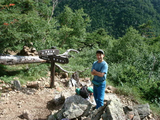 広河原からの一番バスは6:50であるが、6:00過ぎから鬼のように長い列を作り始めたトップシーズンの登山者軍団を見て芦安村もおののいたか(?)、6:30に出発が繰り上げられた。おかげで北沢峠に7:00前に到着。綺麗なトイレで(もちろん紙付き)用をたし、準備をして出発。八丈沢やAフランケ基部の滲みだしはあてにならないので、仙水小屋で二日分の水(3リットルづつ)を汲む。仙水峠から駒津峰への急登にあえぎ、しかし鮮やかな夏山を堪能しつつ甲斐駒の頂上に11:00に到着。休憩をはさみ、黒戸尾根を八合目まで下る。八合目に12:00前後。
