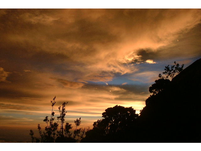 ラバンラタのレストハウスの目の前に立ちはだかるパナール・ラバンの大岩壁が赤く染まる頃、絶景を見ながら夕食を取った。明日は明け方の2時に起き、暗いうちにローズ・ピークに立つ予定。早めに就寝した。