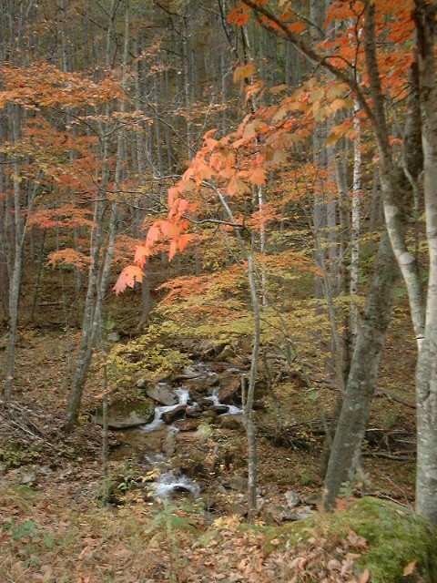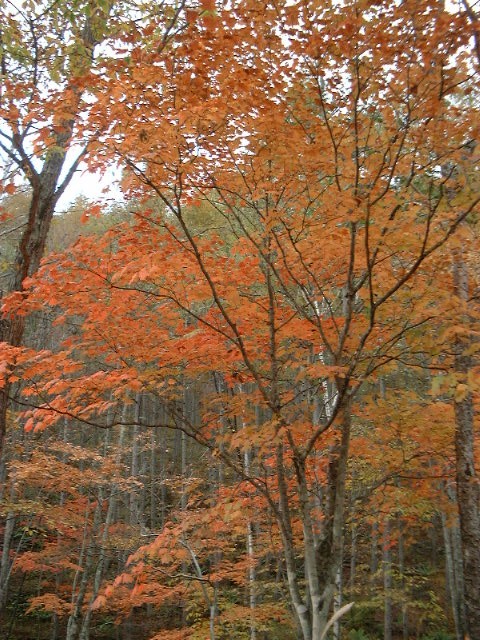 森中が紅に燃えるような紅葉に出くわすことはめったにない。