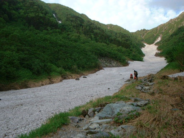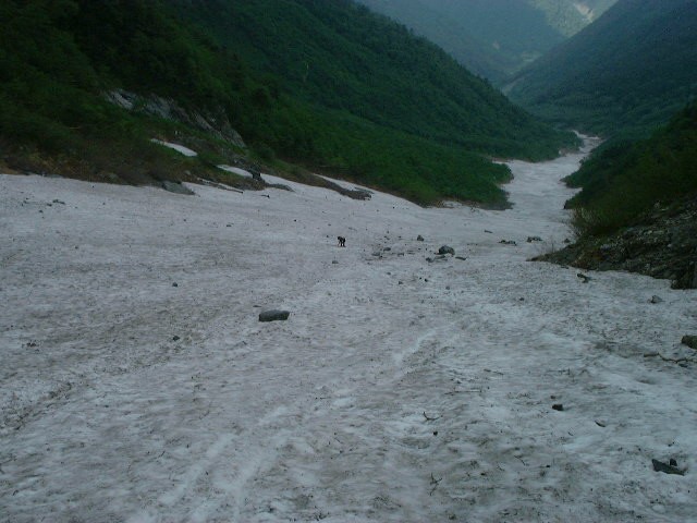 夏をこえると跡形もなくなるとは思えないほどの雪渓だった。