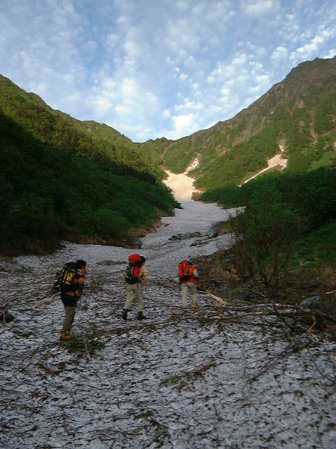 <大樺沢雪渓をつめる>