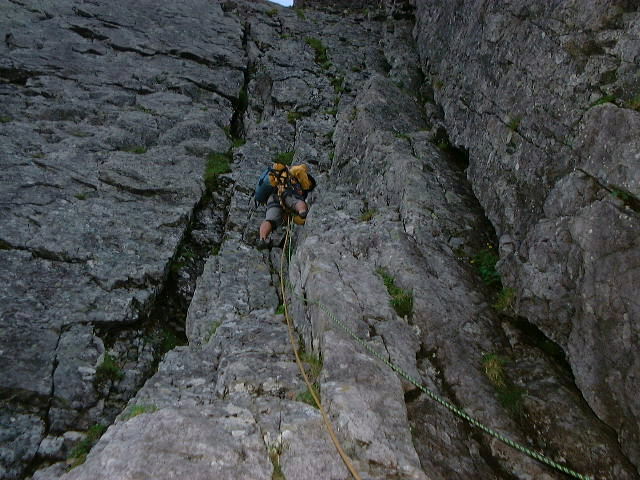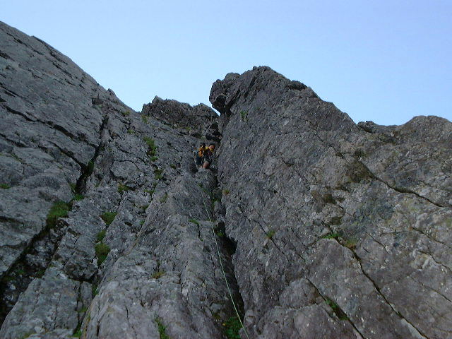 <1ピッチ目のディエードル下部。岩も堅くて快適!>