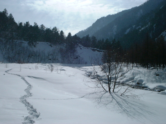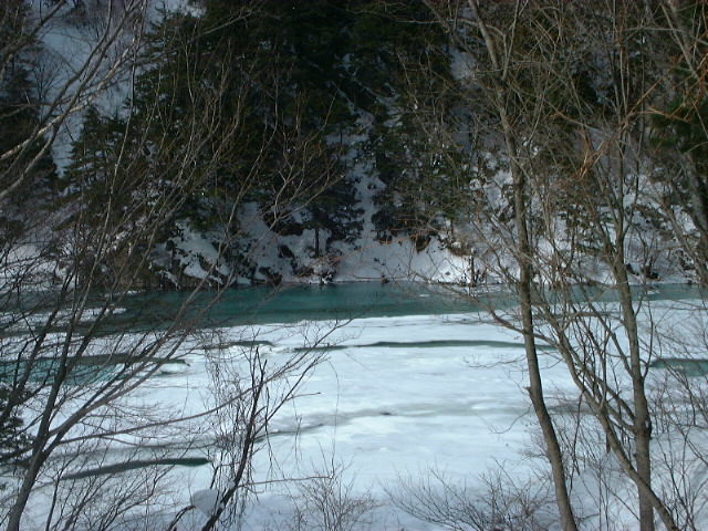 水面に氷が浮かぶようになると、そろそろダムの湖の端で、それより上流は渓流となる。