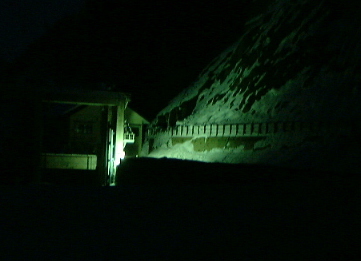 一人でトンネルをとぼとぼ歩き、ダムに付くと、真っ暗闇の中に管理舎が煌々と光っていた。