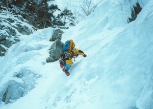 有持さんの持っているバイルもあまり性能の良いバイルではない。おまけにアイスハーケン一つ持っていないのだから、氷瀑を登っている最中にはランニングがとれない。つまりトップは万が一落ちたらグランドフォールするしかない。氷壁の途中でぶら下がるのではなく、地面にたたきつけられるのだ。