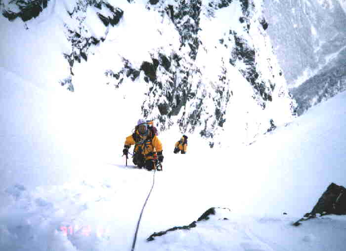 その時、我々に残された唯一の選択肢は、向こう側がどうなっていようとも上に向かう事だった。その雪庇を突き破るしか、我々には方法がなかった。