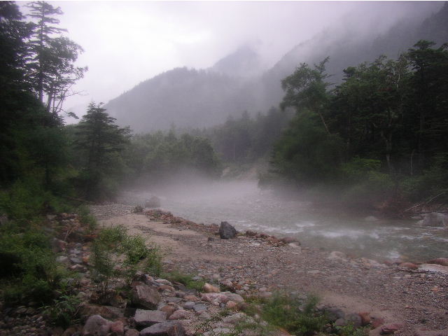上高地では雨の中でも一応ビールで乾杯し、山行の無事を祝う。すっかり日も暮れ、最終のバスで沢渡へ。閉まる間際の沢渡温泉に駆け込んで風呂に入り、メシを食って8時半ころに東京に向かった。